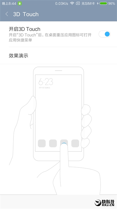 4GB+128GB高配版还支持压感操作,和华为的有些接近(包括仅限高配版支持),用力按图标即可弹出快捷操作菜单。实测弹出速度还是挺快的,只要用力按下图标即可。